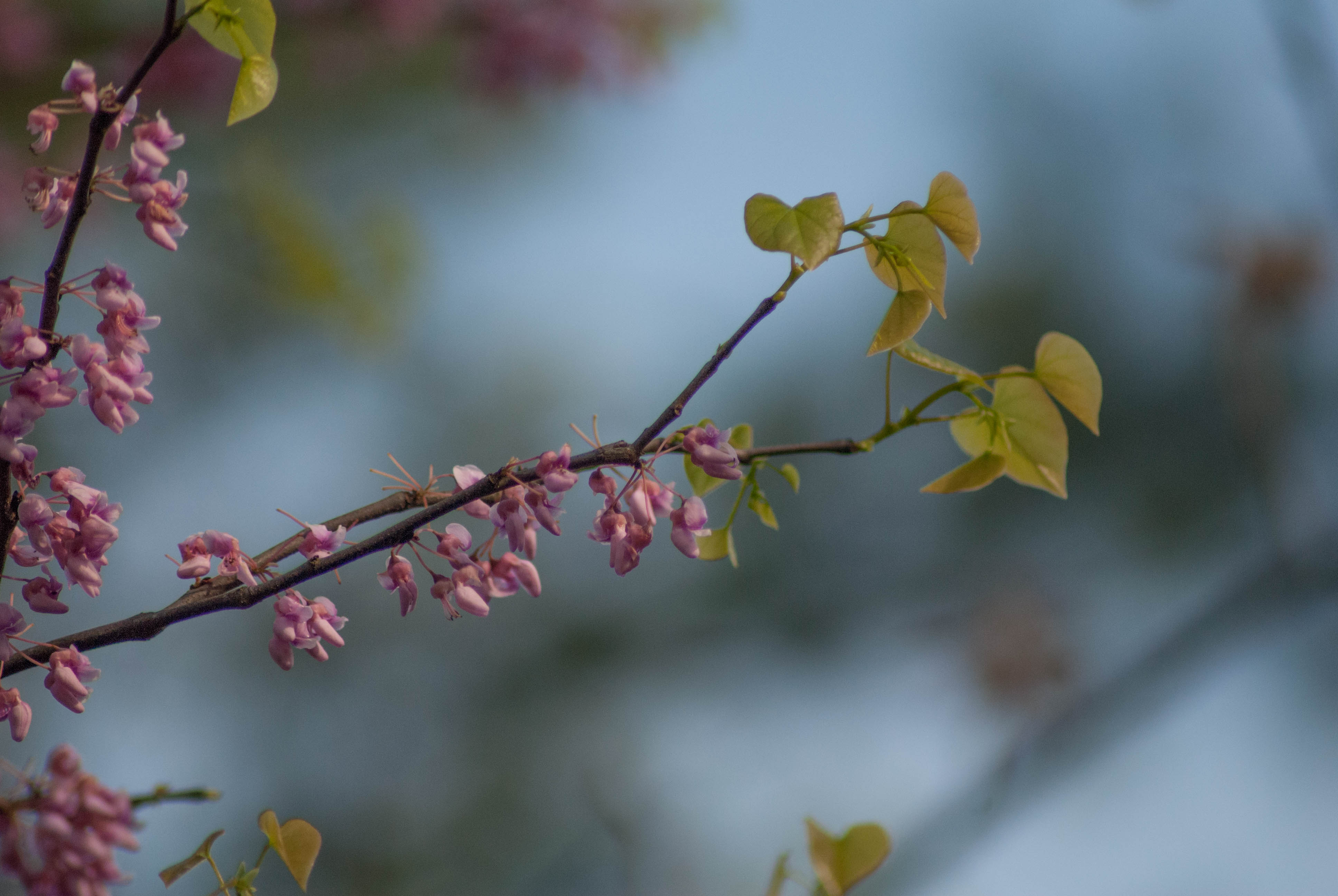 The Eastern Redbud is one of the earliest trees to flower in the spring and blooms well before their leaves come out. They are an understory tree that does decently in forest interiors but thrives when on the edge of a forest. These two facts combine to mean that during the early spring, many highways in the eastern US can see their pink and purple flowers standing out clearly against a backdrop of trees still dormant for the winter.