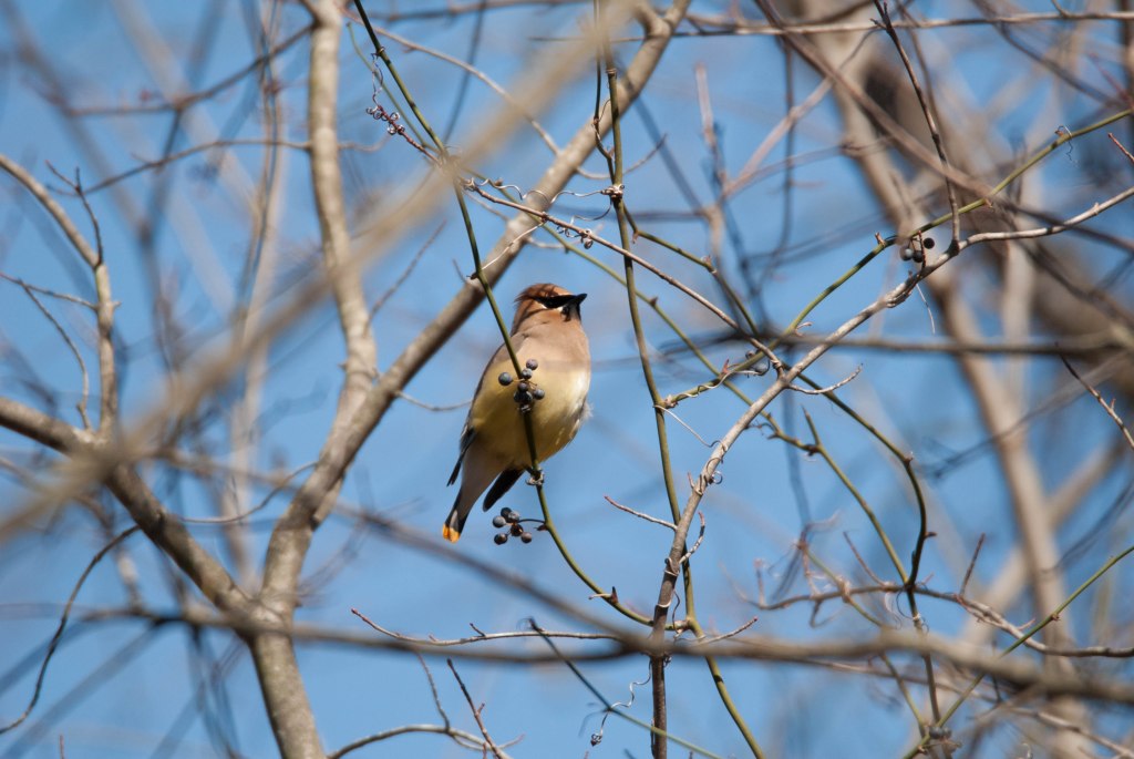 The Cedar Waxwing is a bird that can be found throughout North America. During the summer, they can be found in the boreal forests of Canada and Alaska and during the winter they can be found as far south as Columbia. There is a belt through the Northern United States where they can be found year-round. They are frugivores which means they exclusively eat fruit. This means that while they might be present in residential areas, many amateur birders struggle to spot them because they aren’t attracted to typical bird feeders. Their name comes from the fact that they have a particular fondness for the berries of cedar trees which will produce fruit in the middle of winter. If an amateur birder really wants to attract Cedar Waxwings to their yard, they need to plant a good variety of plants that produce fruits.