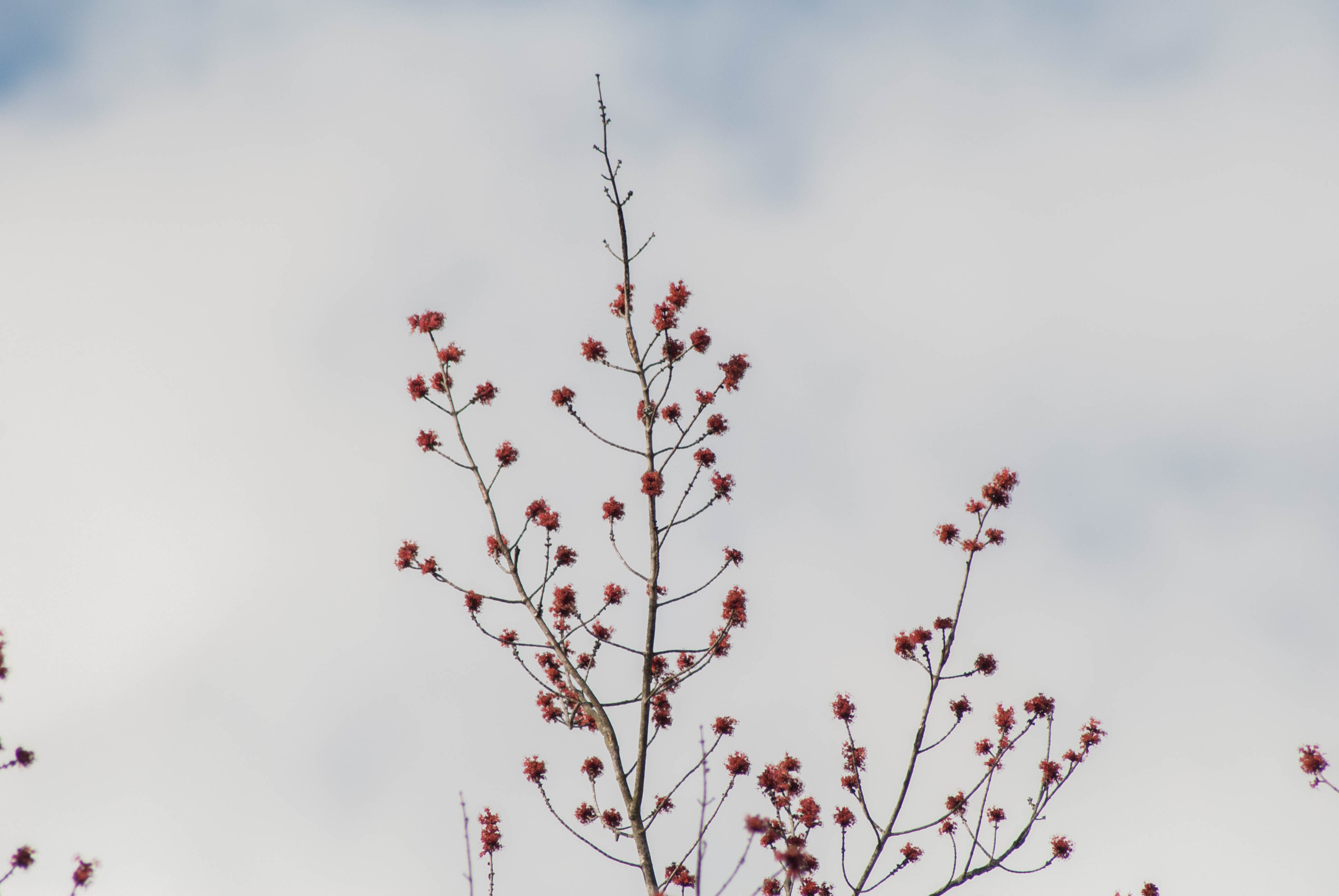 The Red Maple is a common tree in the Eastern United States. It can be found as far south as Florida and as far north as Southern Canada. It gets the “Red” part of its name from the deep red color that its leaves become during the Fall, but less well known is the red color of its flowers in the early spring. They are not exceptionally large flowers, and many people miss them, but they are one of the earliest flowers to bloom during the year. By the time most plants are just starting to emerge for the year, the Red Maple is already producing seeds, some of which will sprout that same year. This quickness to produce seeds (and the large quantity of seeds) makes the Red Maple one of the most successful trees at colonizing recently disturbed areas and makes them a staple of early successional forests. They are also commonly selected as ornamental trees due to being able to recover well from damage or disturbance, and due to well-maintained ones having very pleasing aesthetics. These two living situations combined make the tree very common in any type of environment, no matter the level of human presence.