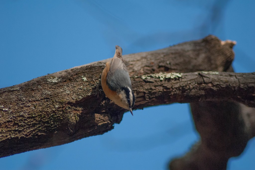 The Red-breasted Nuthatch is a small bird that is usually seen climbing up and down the trunk of a tree. Much like a woodpecker, they feed primarily on digging insects out of the bark. They are a more northern species and during the winter are only found as far south as the southern United States. During the summer, they are primarily found in the boreal forests of Canada but will venture further south in a few areas along mountain ranges.